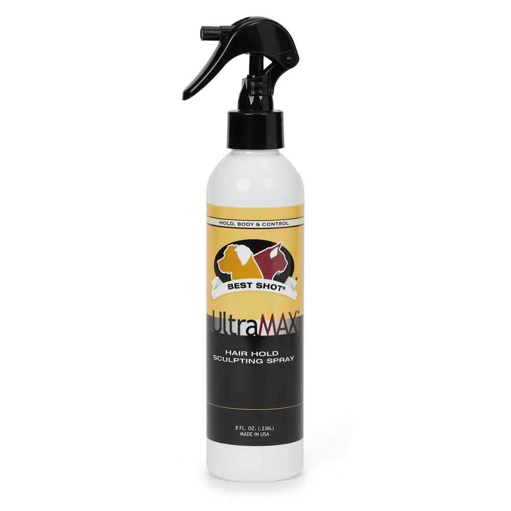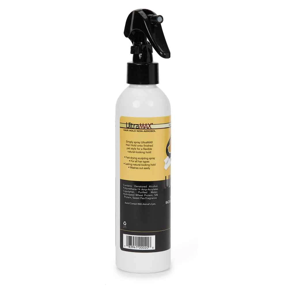 Environmentally friendly aerosol-free UltraMAX Hair Hold Spray is a fast drying scuplting spray that’s safe for any hair type. Provides long-lasting natural-looking hold. Washes out easily,simply spray as needed onto finished pet style for a flexible natural-look hold. 8 oz Spray. Made in USA