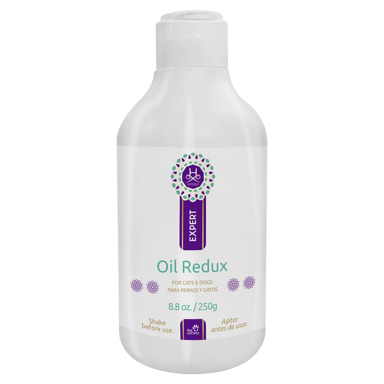Lose the oil, not the competition with the Hydra Expert Oil Redux. A pre-bath deep cleanser that removes excessive oil from localized areas of the coat. Infused with natural ingredients that protect and nourish the skin and coat. Simply apply on dry coat to desired areas (shake bottle before applying). Massage into coat for about 5-10 minutes and then proceed with normal bathing routine.