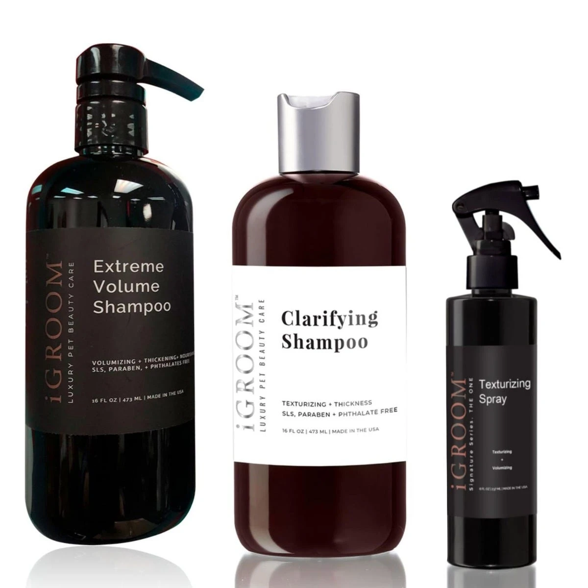 Includes Extreme Volume Shampoo 16oz, Clarifying Shampoo 16oz, and Texturizing Spray 8oz