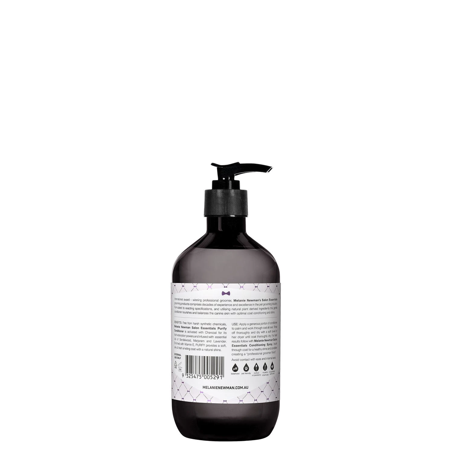 Benefits: Free from harsh synthetic chemicals, Melanie Newman Salon Essentials Purify Conditioner is activated with Charcoal for its toxin adsorption powers and infused with essential oils of Sandalwood, Marjoram and Lavender. Enriched with Vitamin E, Purify provides a soft, silky fresh smelling coat with a natural shine.