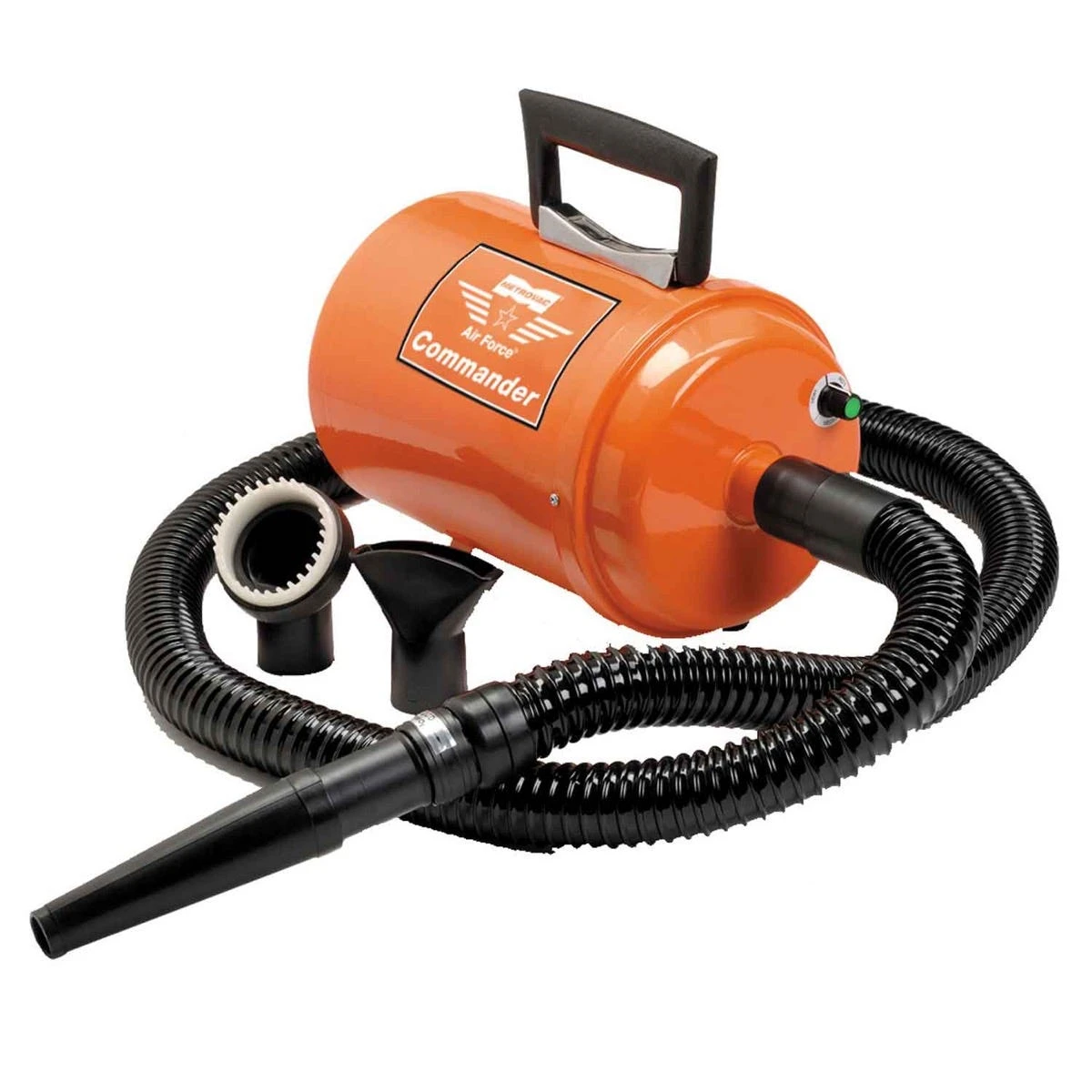 Powerful Air Force® Commander® Vari-Speed Dryers from Metro are lightweight and portable for shop or mobile use. They use a warm stream of air to effectively blow water from the dog’s coat to cut drying time in half.