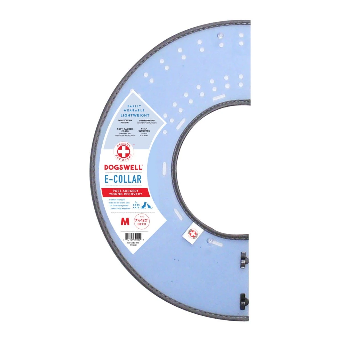 This E-Collar’s rigid design makes it the most effective in preventing the animal from reaching wounds during periods of recovery. Dogswell® Remedy + Recovery® Rigid E-Collars are perfect for post-surgery or wound recovery, treatment of hot spots, breaking the itch-scratch cycle, helping your pet stop licking medication and end self-inflicting wounds. Our soft padded edge design and lightweight material makes this product comfortable for your pet and helps to protect your furniture.